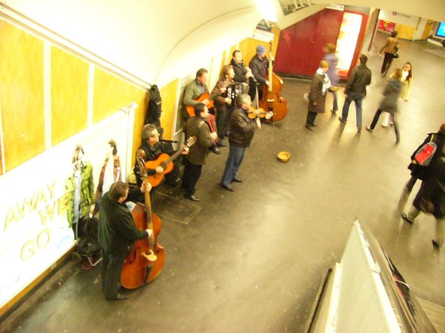 途中のシャトレーでは地下鉄名物の演奏家たち。このチームはウクライナからやってきてるそうな。