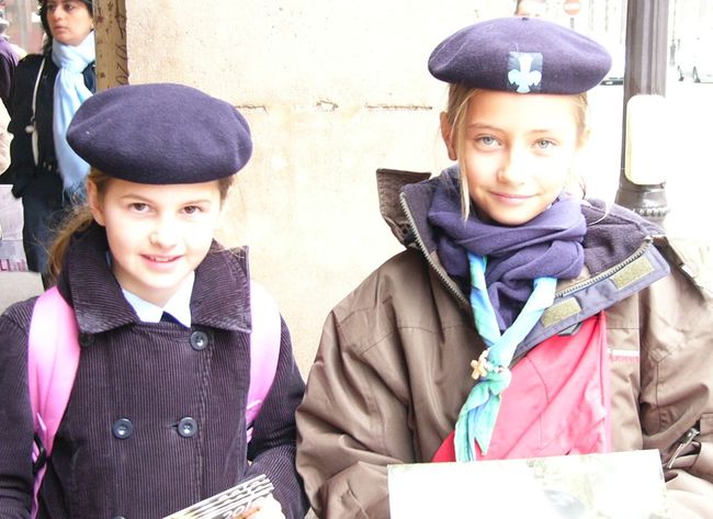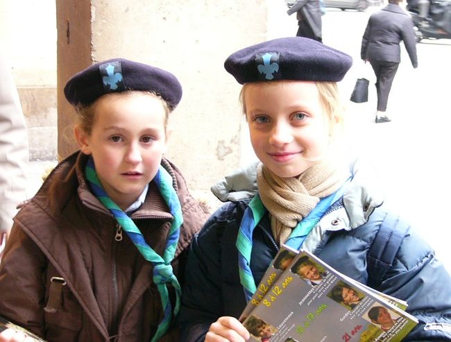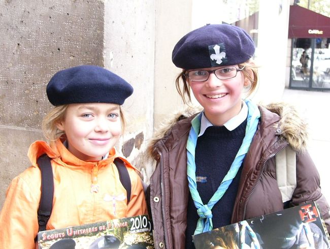 チュイルリーではガールスカウトの一団がチャリティカレンダーを販売中。