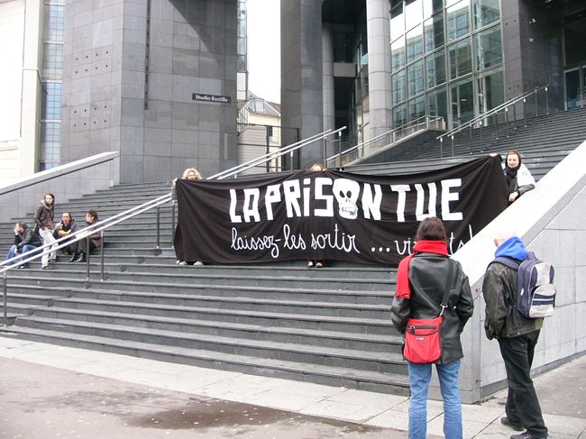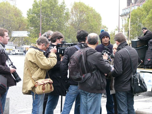 バスチーユではデモの準備中。どうも「良心の囚人」かなにかの解放を訴えるデモらしい。朝の警官が説明しようとしたのはデモのことだったのだな。
