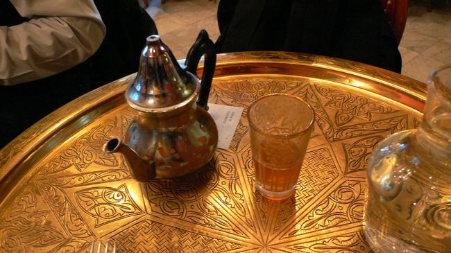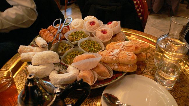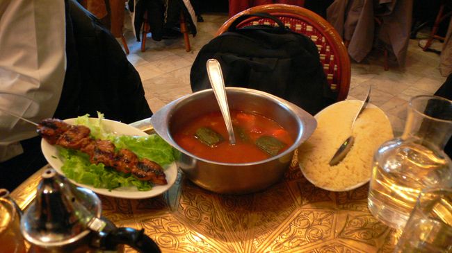 串焼き付きクスクスにお菓子、ミントティーを注文。これで25ユーロなり。