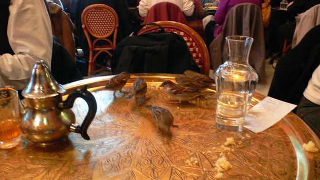 テーブルにこぼしたクスクスはこうして小鳥が片付けてくれる。