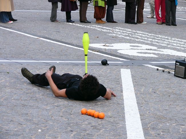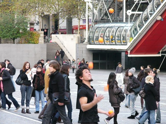 さらにレアル と巡ってポンピドーセンター前広場に。大道芸人がパフォーマンス中