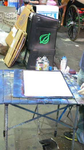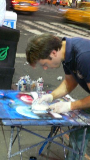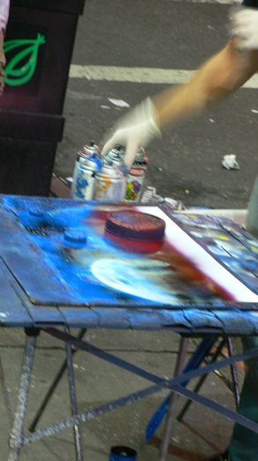ホテル前ではスプレーでの大道芸。