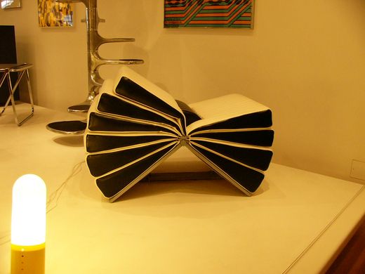 本のページのようなクッションをめくることで、色んな背当ての角度に変更できる椅子