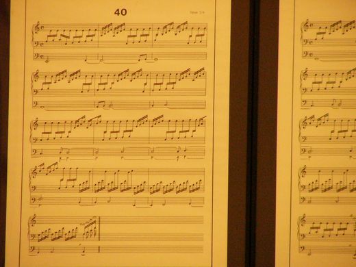 壁にみっちりと貼ってあるのは、モーツァルトの楽譜。演奏が視覚で体験できるというコトらしい