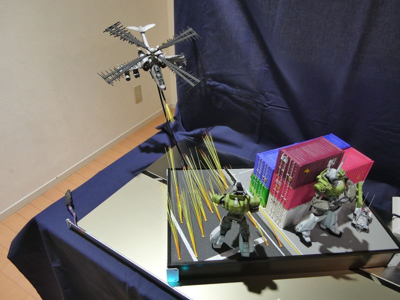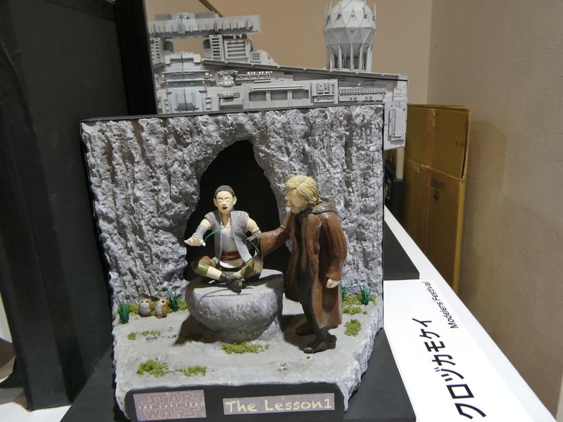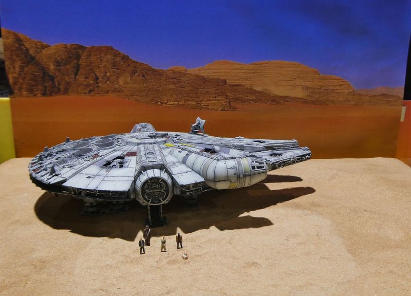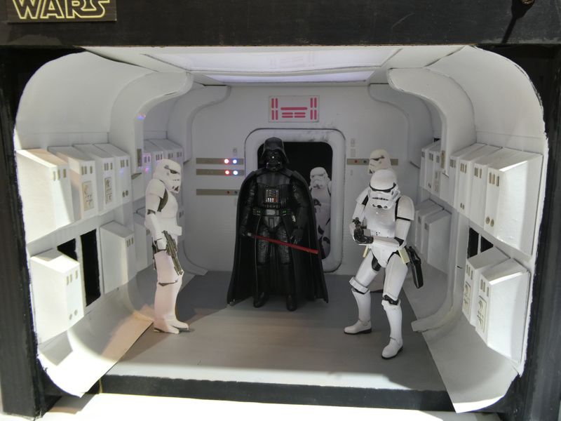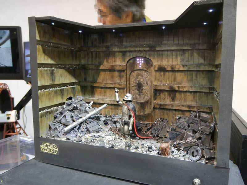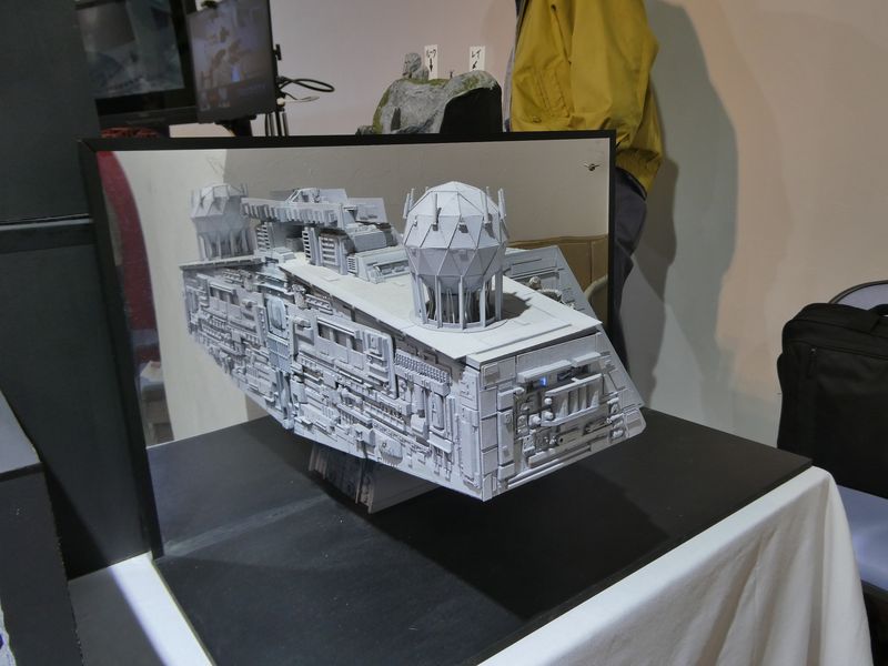 スターデストロイヤーの艦橋部を半分だけ製作して鏡で全体があるようにしている。